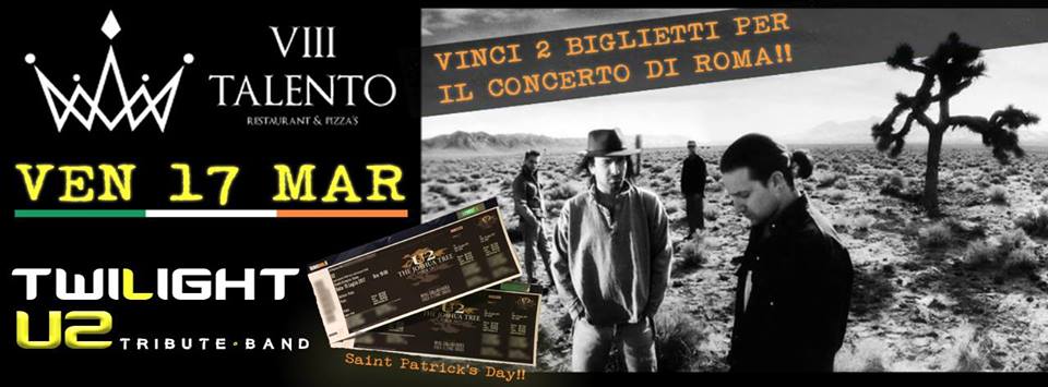 In occasione del 30° anniversario di The Joshua Tree, a pochi mesi dal tour mondiale degli U2, i Twilight - U2 Tribute Band e l'VIII Talento ti invitano a vivere una serata speciale, ricca di sorprese. https://youtu.be/XmSdTa9kaiQ Venerdì 17 marzo, i Twilight U2 tribute band tornano a calcare il palco dell'VIII Talento: non una serata…Read more La “Joshua Tree Night” vi regala i biglietti per il live degli U2!